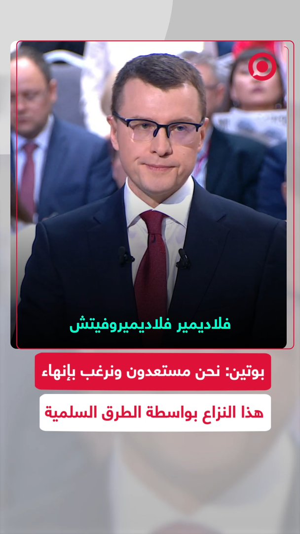 Play/Pause Mute/Unmute بوتين: نحن مستعدون ونرغب في إنهاء هذا النزاع بواسطة الطرق السلمية Save post Share Facebook X VK.com Telegram