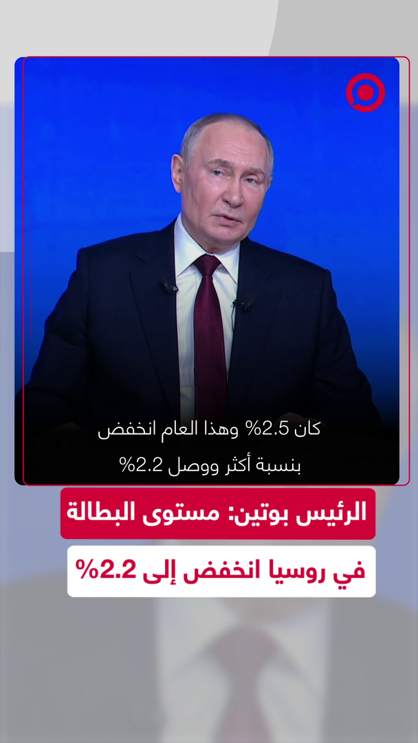Play/Pause Mute/Unmute بوتين: البطالة في روسيا وصلت إلى مستوى منخفض تاريخي Save post Share Facebook X VK.com Telegram