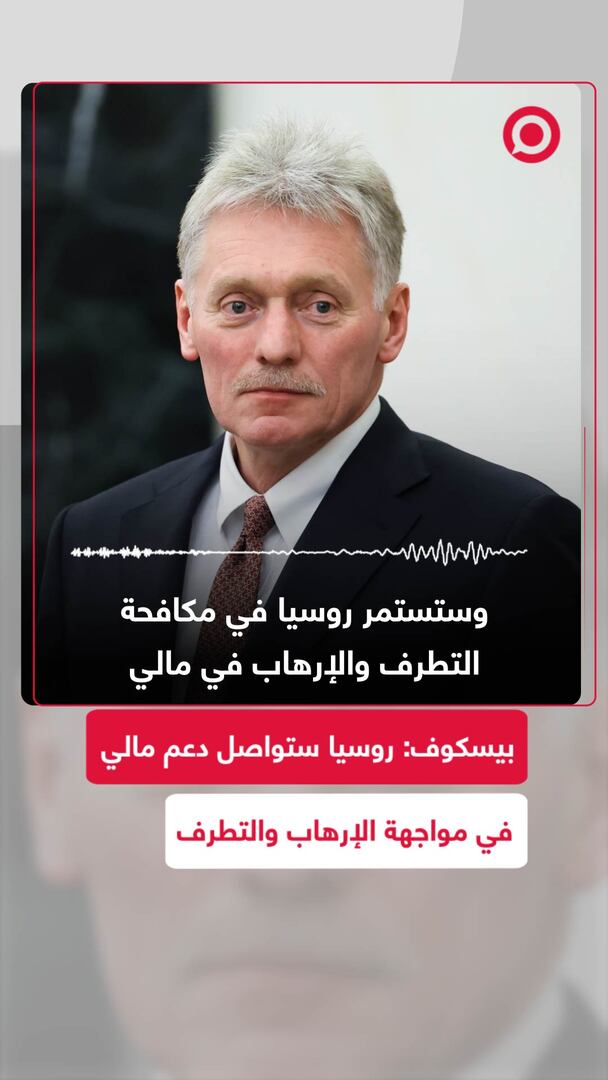 Play/Pause Mute/Unmute بيسكوف: روسيا ستواصل دعم مالي في مواجهة الإرهاب والتطرف Save post Share Facebook X VK.com Telegram