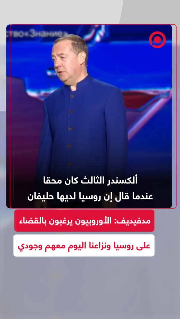 Play/Pause Mute/Unmute مدفيديف يتحدث عن رغبة الأوروبيين في زوال الدولة الروسية Save post Share Facebook X VK.com Telegram