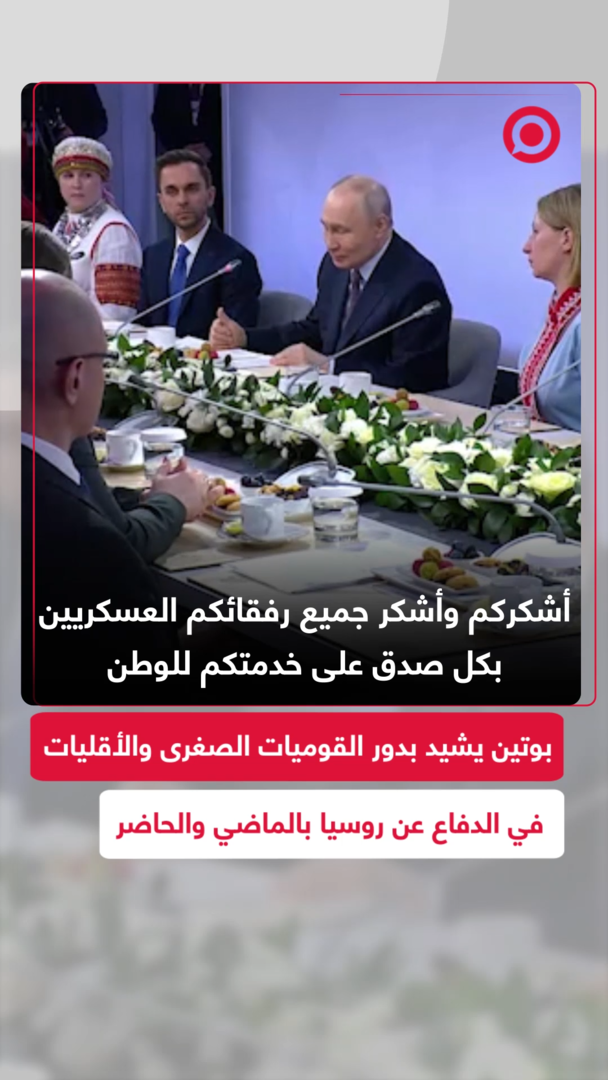 Play/Pause Mute/Unmute بوتين يشيد بدور أبناء القوميات الصغيرة والأقليات في الدفاع عن روسيا في الماضي والحاضر Save post Share Facebook X VK.com Telegram
